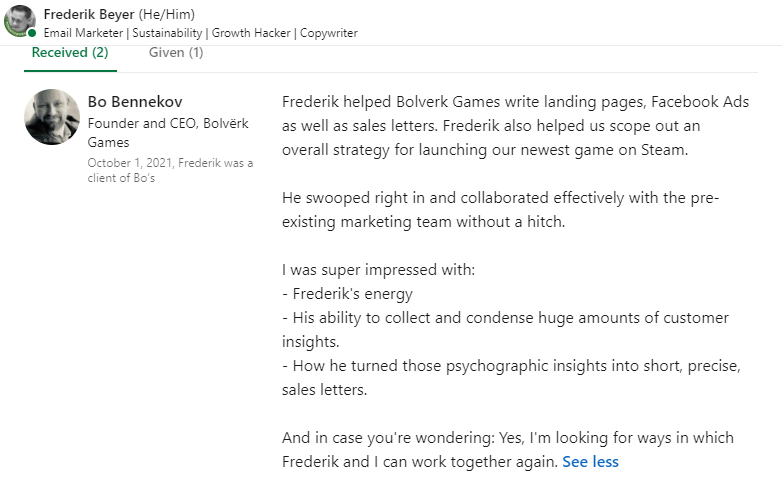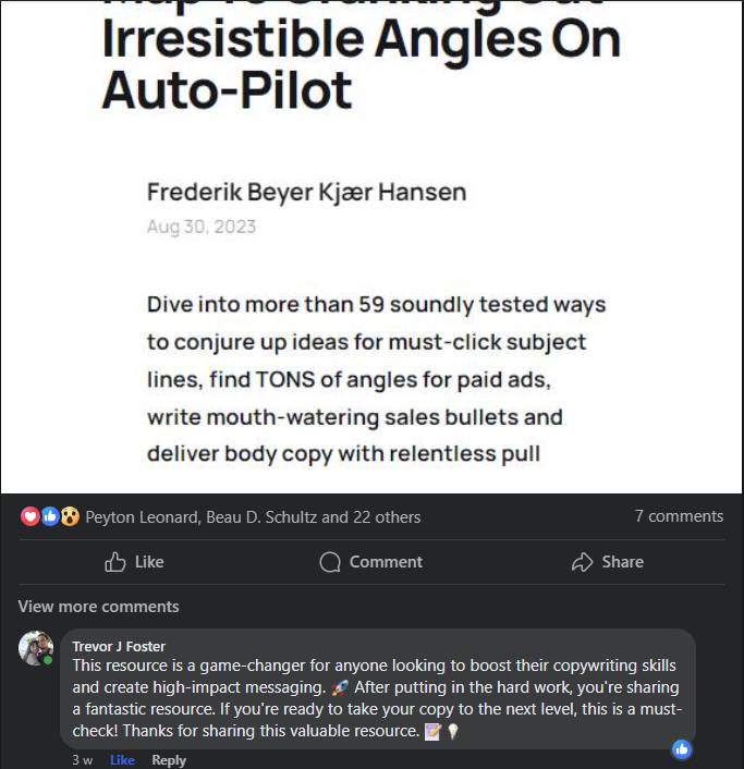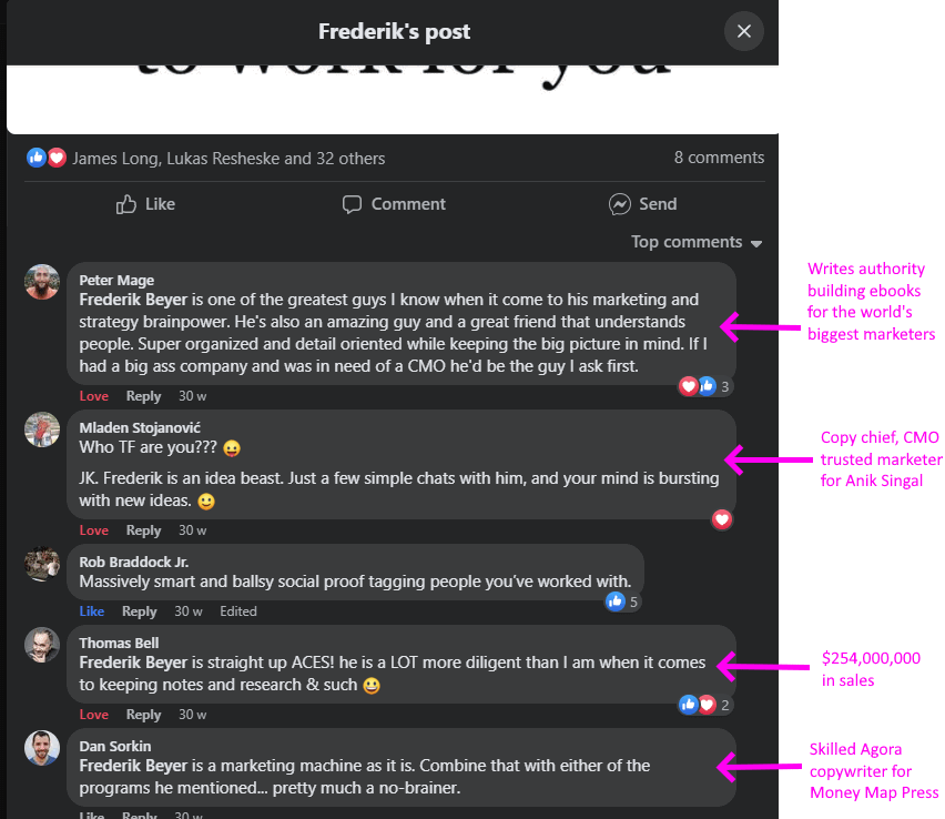 Comments From Collaborators, Connections, Marketers and Copywriters
