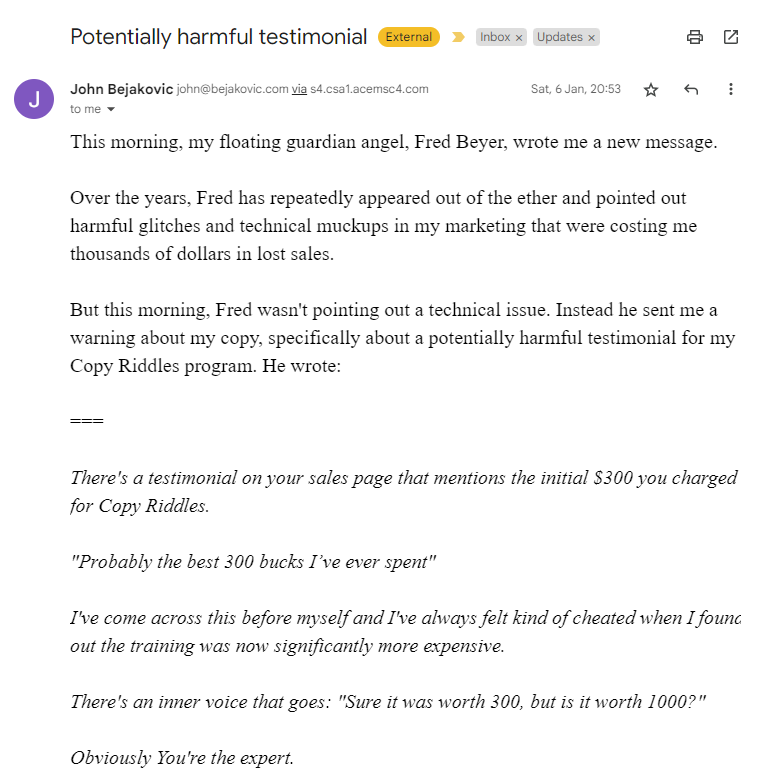 David Garfinkel, "The World's Best Copywriting Coach" acknowledges my insights.